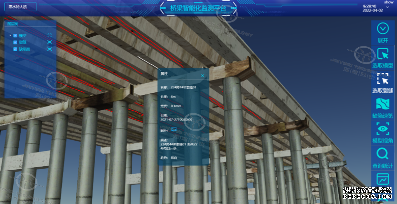 珈鷹科技搭建了GIS+BIM數字化平臺,缺陷信息自動映射,實現缺陷的可視化管理,數據可對接主流的三維數字化平臺。“無人機+AI視覺”可以更好地呈現缺陷所在位置,方便后續養護管理工作的進行。