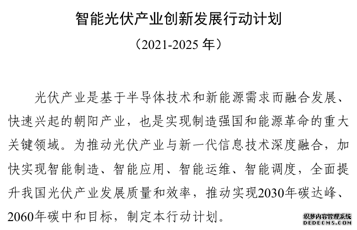 “十四五”后,國家和地方密集出臺政策,推動能源數字化智能化發展,加快光伏產業全面升級。工信部等五部門聯合發布的《智能光伏產業創新發展行動計劃(2021 - 2025 年)》,鼓勵光伏企業與多領域企業探索智能光伏應用模式,推動無人機等智能技術在光伏電站運維中的應用。其發展目標是,到2025 年,光伏行業智能化水平顯著提升,產業技術創新取得突破。