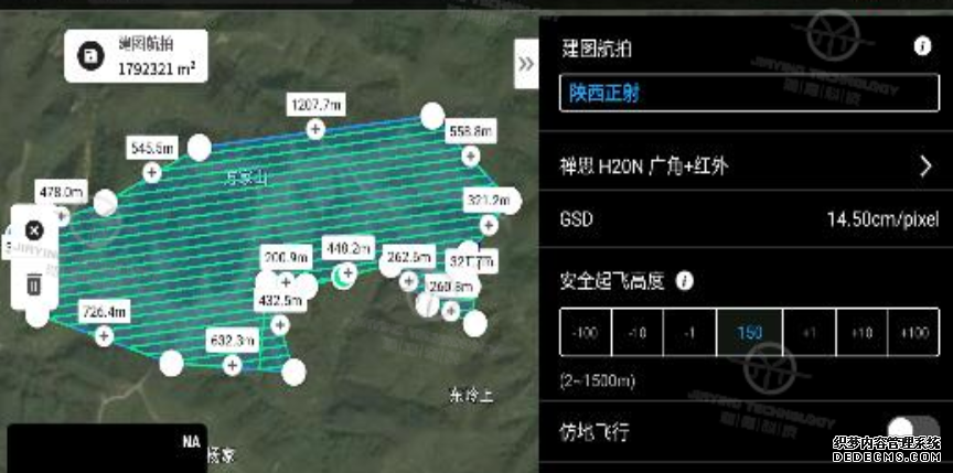 珈鷹結合DOM正射影像和DEM數字高程模型,對光伏電站的布局和地形進行全面分析,綜合考慮光伏板的排列、地形的高程變化以及潛在安全隱患等因素,自動規劃出最優的無人機飛行路線。這種精細化的航線規劃不僅提高了巡檢效率,還能確保無人機在復雜地形和環境中安全飛行,實現高效、精準的巡線仿地飛行。