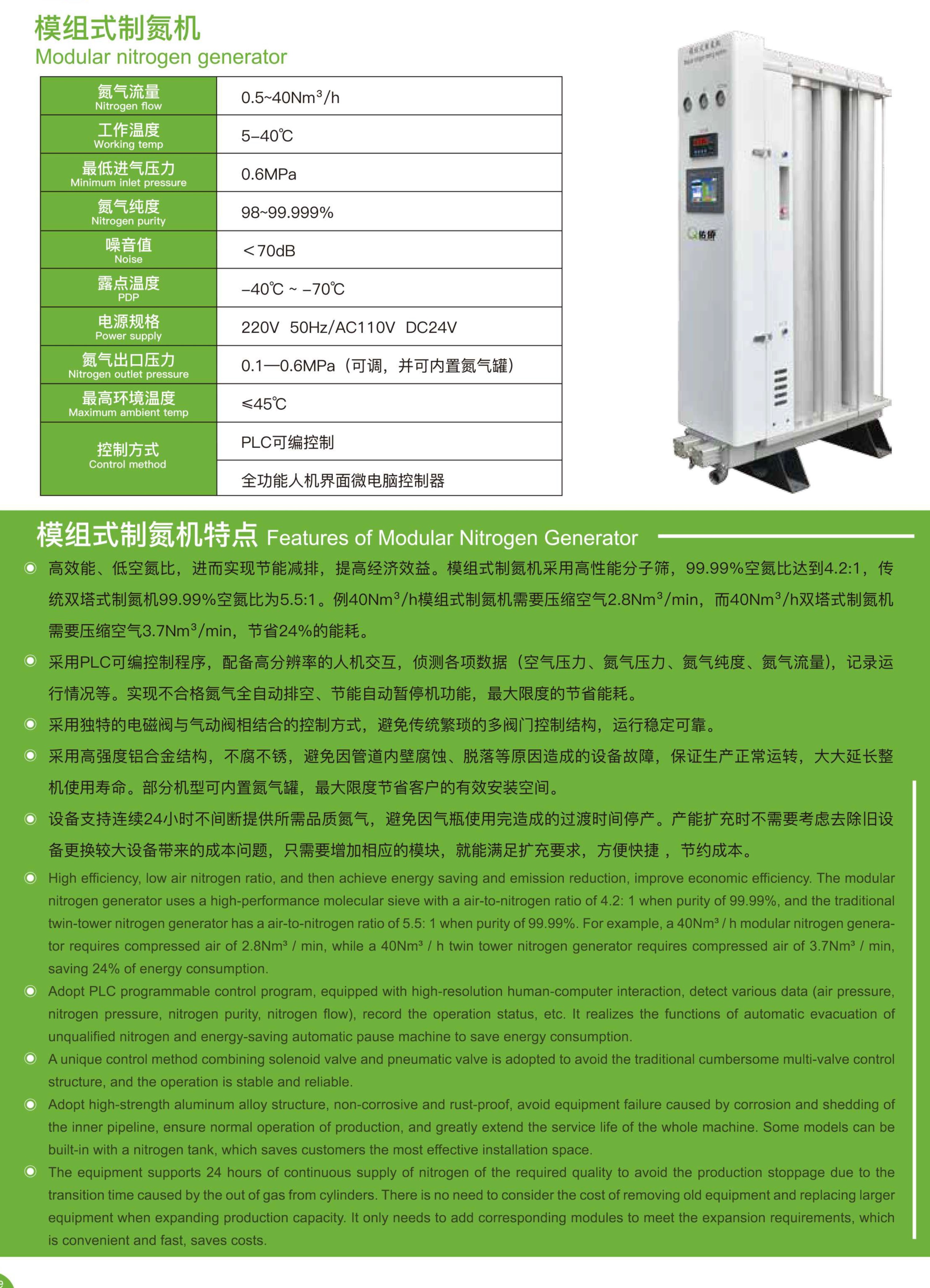 氮氣出口壓力:0.1-0.6Mpa(可調,并可內置氮氣罐)