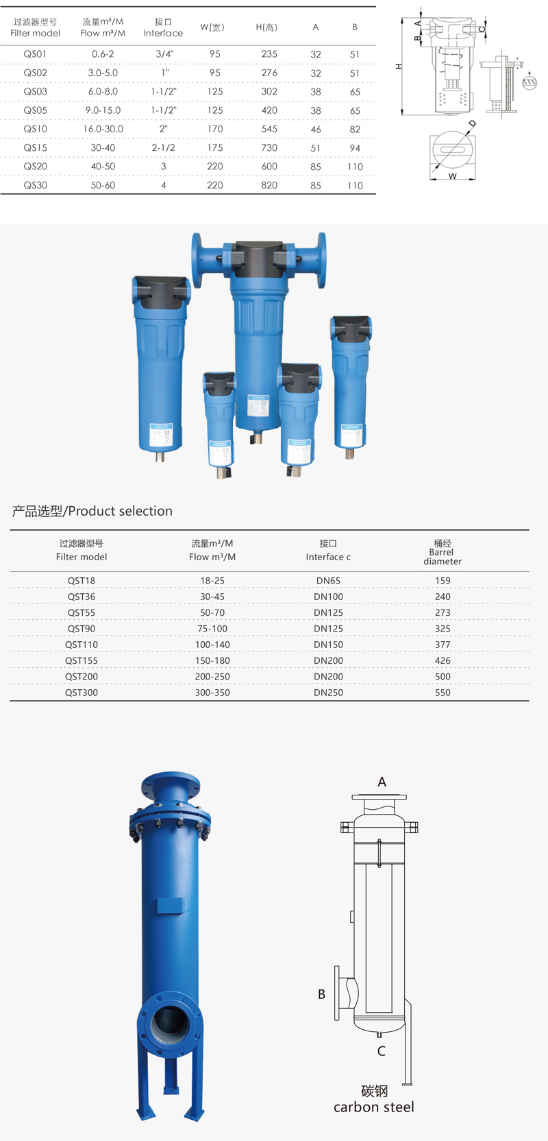 在壓縮空氣過濾器和干燥設備之前安裝氣水分離器可以去除99%的液態水,使下游凈化設備發揮更好的效能.益能氣水分離器獨特的雙 段旋風分離設計,使之比傳統的氣水分離器水效果更高。氣水分離器可選擇的安裝位置在空氣壓縮機,在后部冷卻器前,在儲氣罐 后。