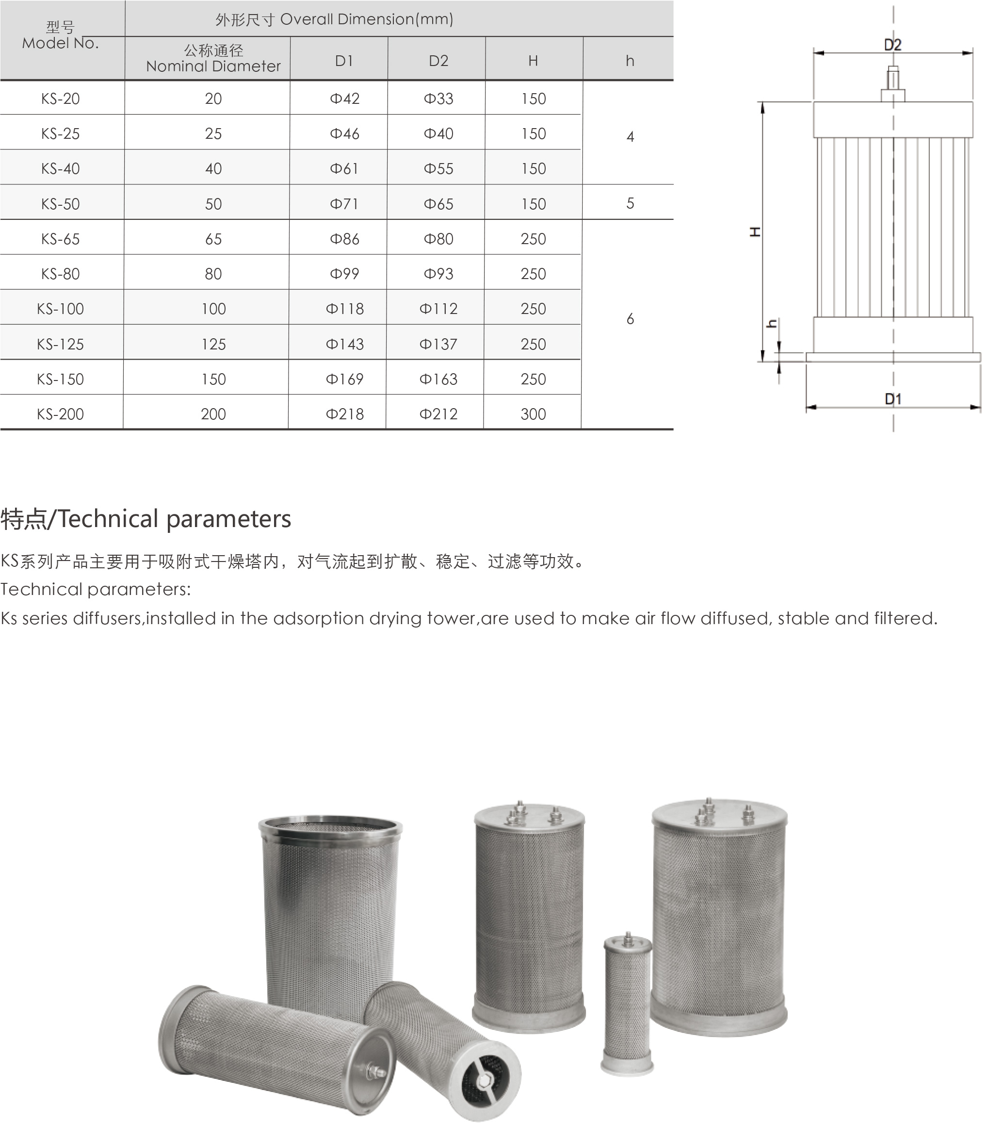 KS系列產品主要用于吸附式干燥塔內,對氣流起到擴散、穩定、過濾等功效