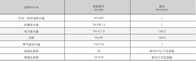 高效過濾器配件表